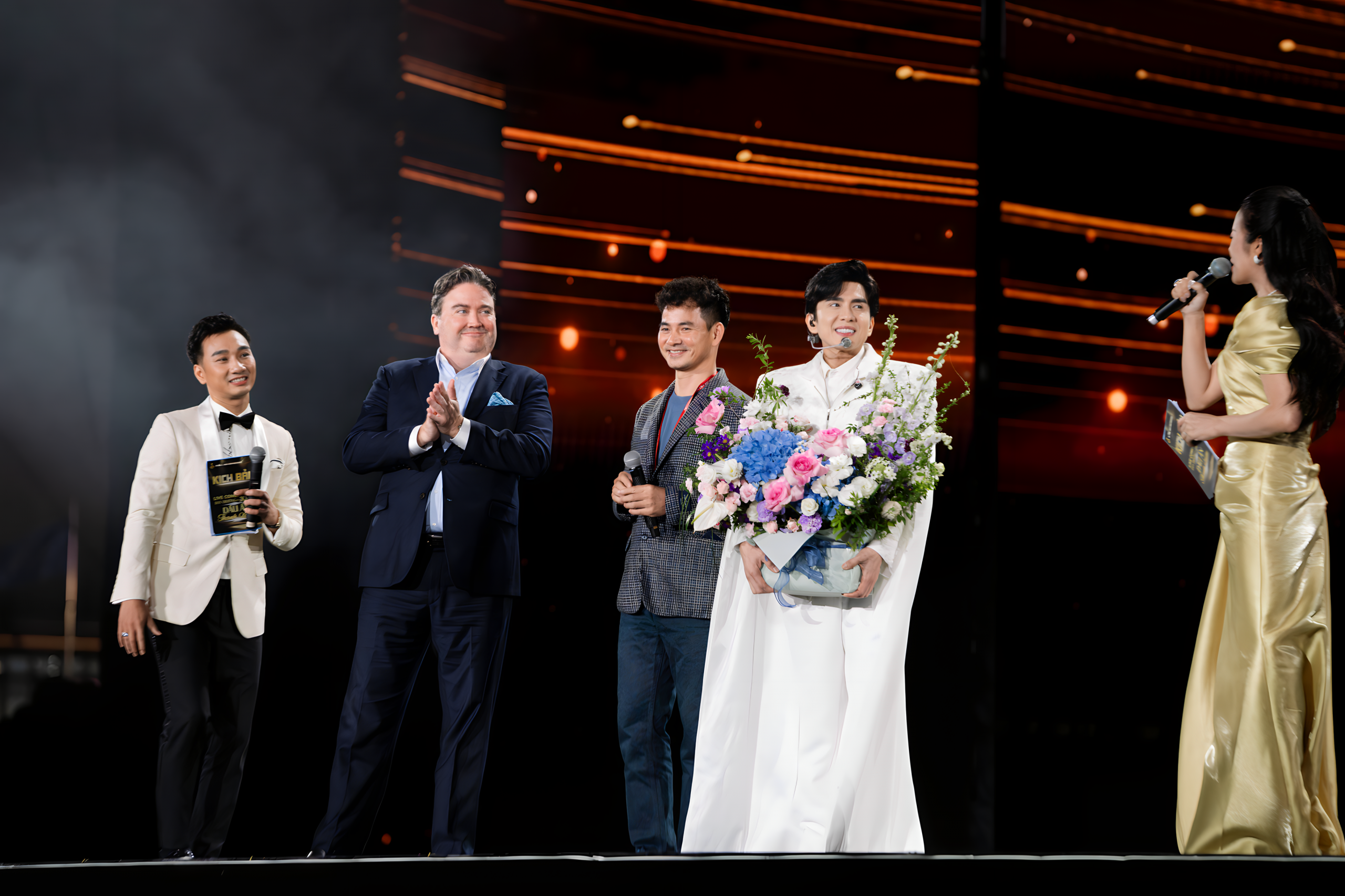 According to the production team, the entire program was structured as a seamless story of youth, with each phase recreated through music, lighting, and the spirit of the time. Dan Truong emotionally expressed his gratitude to the composers who have accompanied him over the years, including Minh Vy, Quoc Cuong, Le Quang, Ly Huynh Long, and Dong Thien Duc. Their appearance on stage became a highlight, showcasing the singer’s respect for his collaborators.