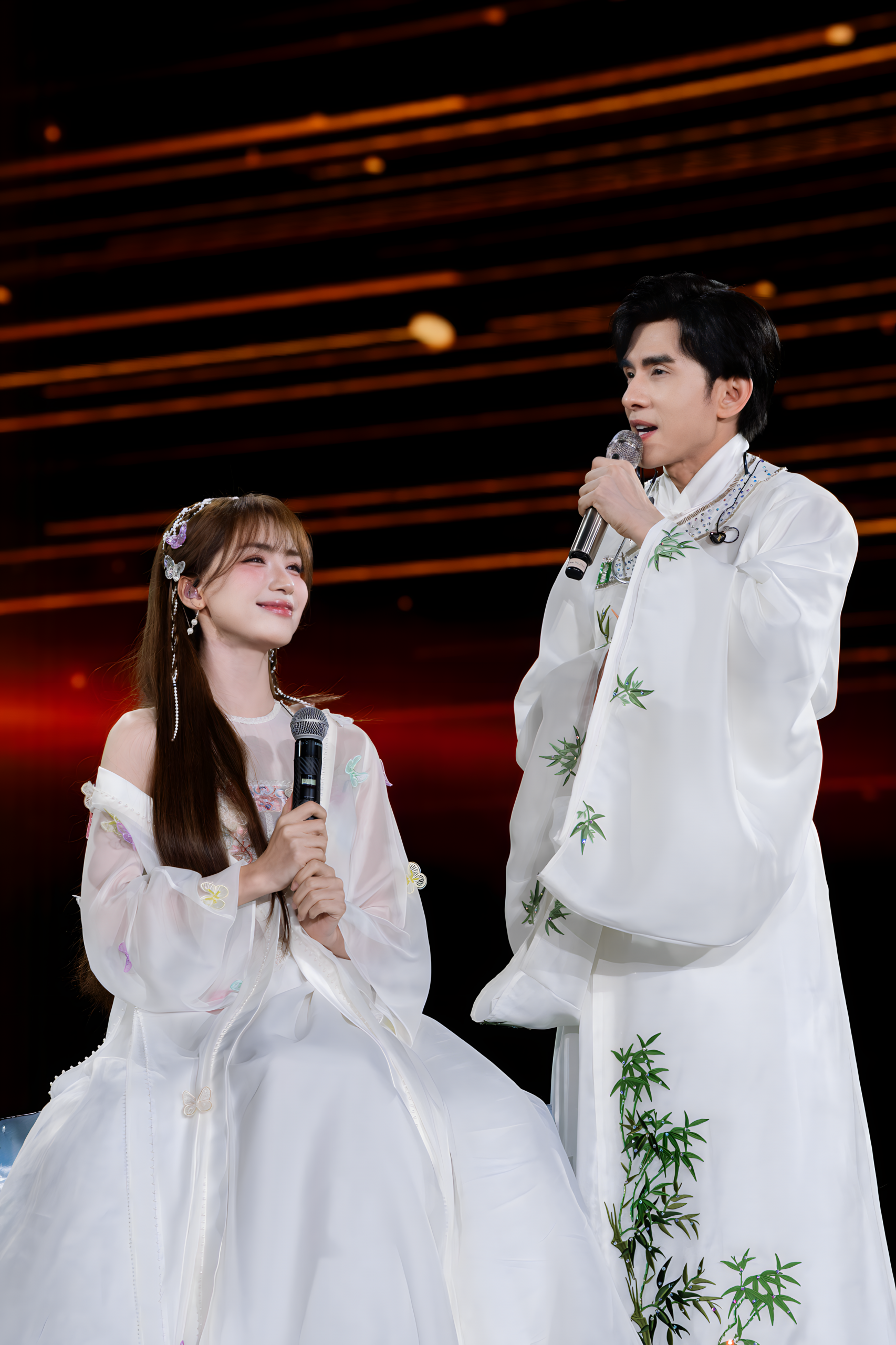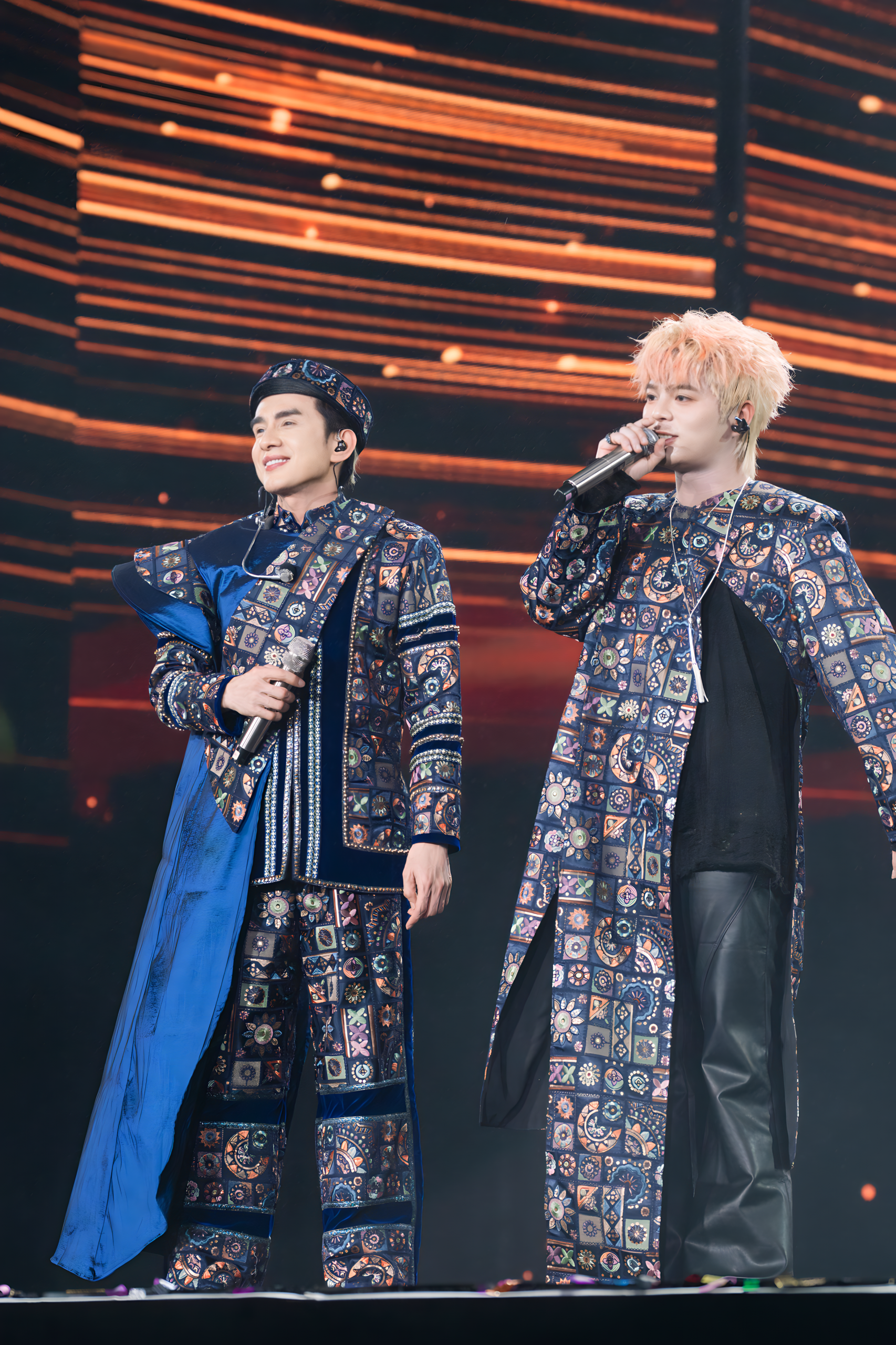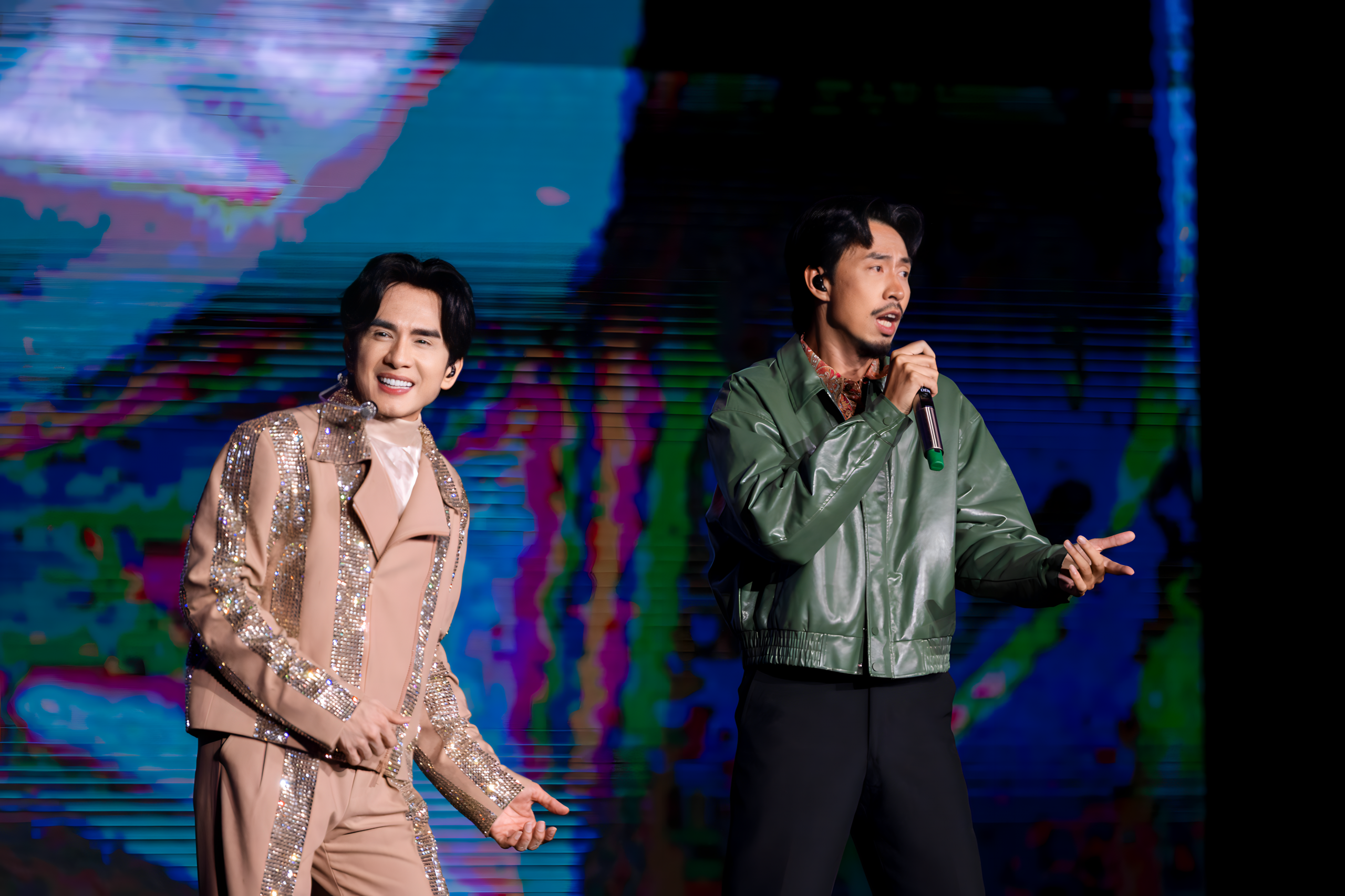 Rhyder created a unique collaboration with Dan Truong in “Tinh Hoa Xu Bac.” Both wore outfits blending traditional and modern influences, delivering an energetic performance. Rhyder humorously shared that he used to call Dan Truong “uncle,” but now says “older brother” because of his astonishingly youthful appearance.