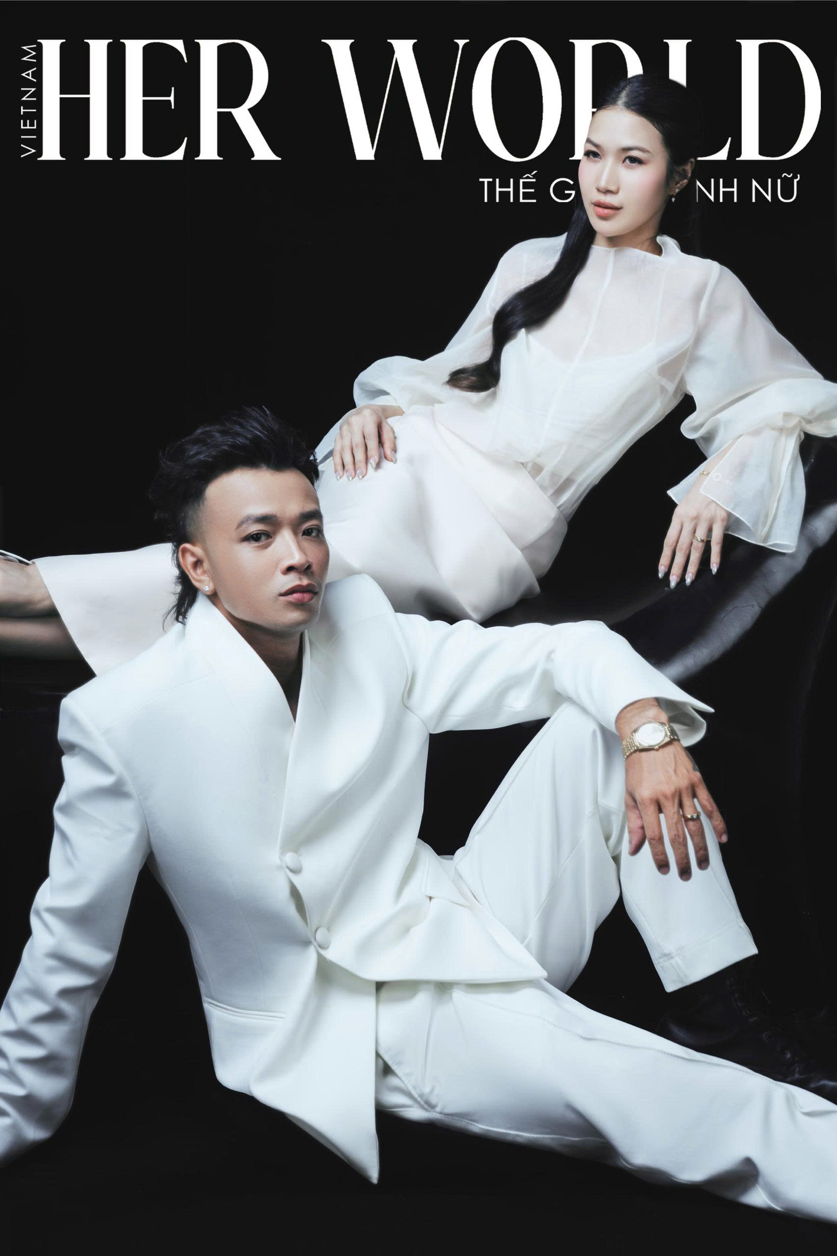 In contrast, Hoang Phi and Cao Thanh Huyen bring a different balance to the concept. Hoang Phi maintains his signature rugged look, highlighted by a mullet hairstyle and an oversized white suit that blends rebellion with sophistication.