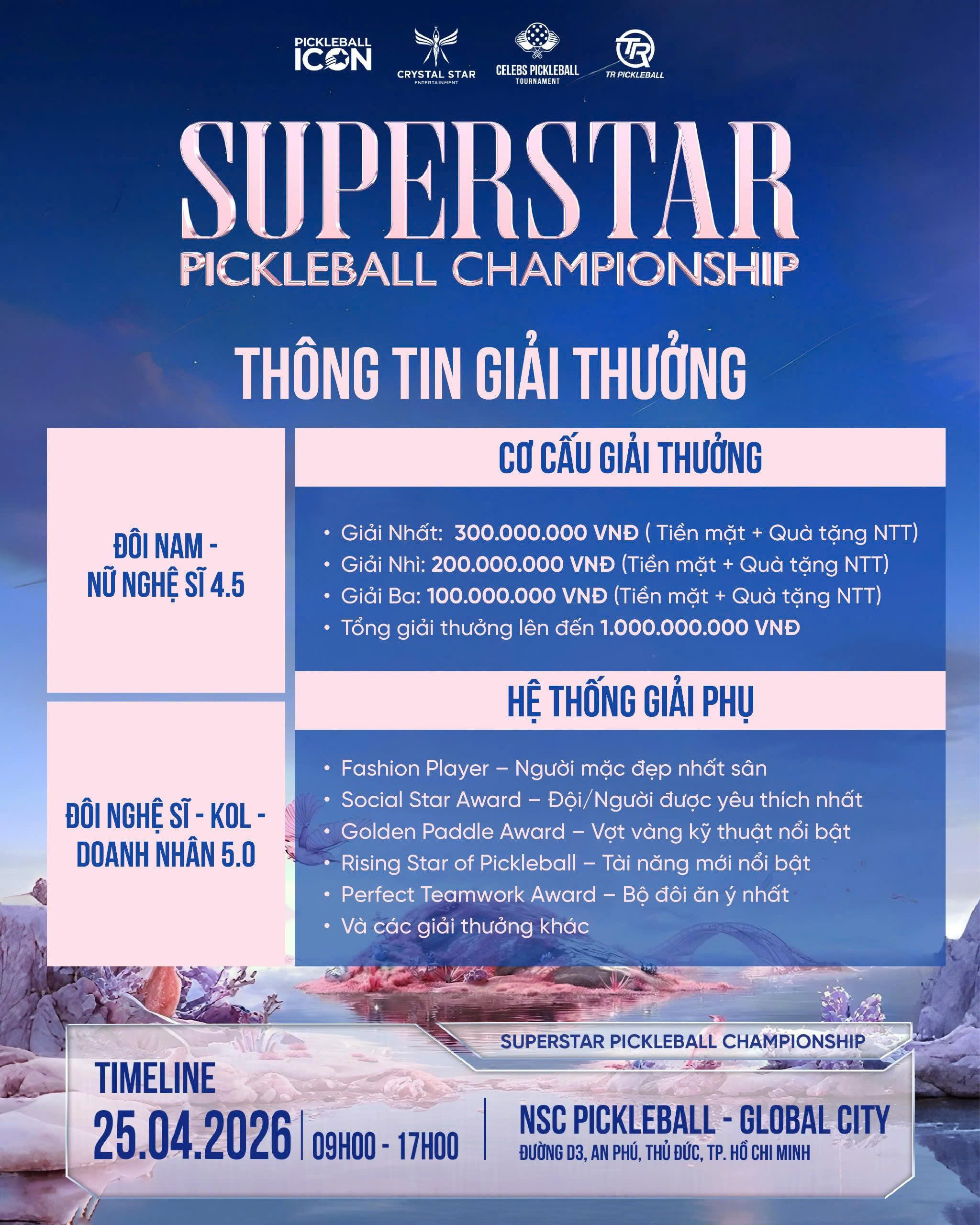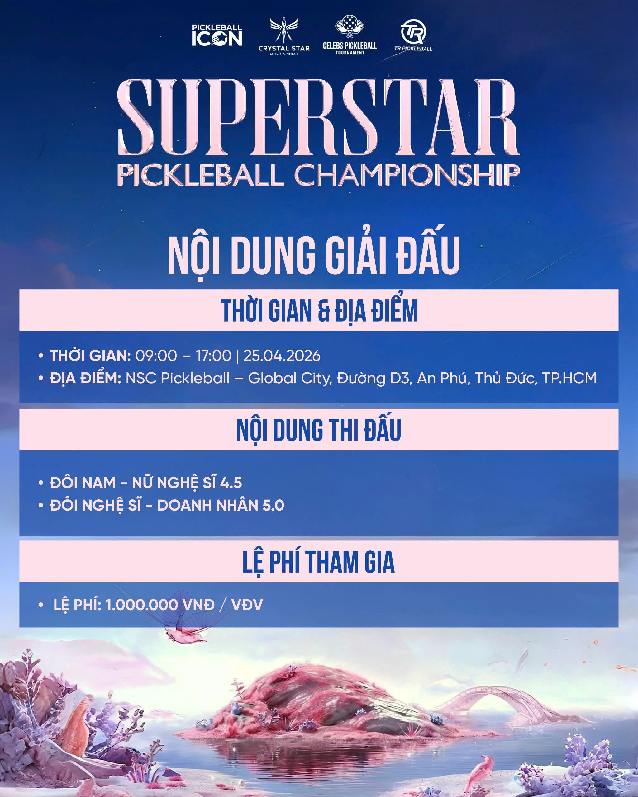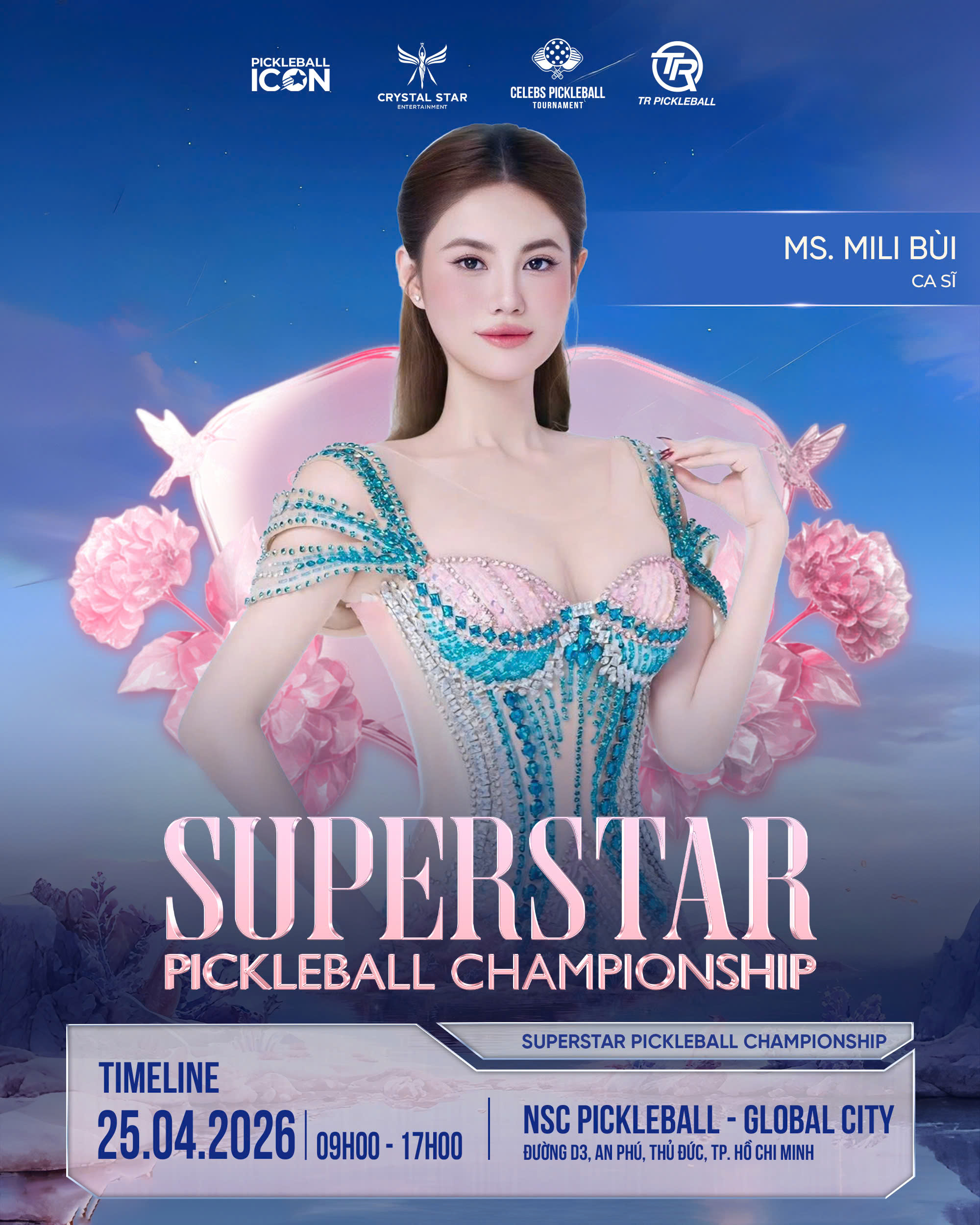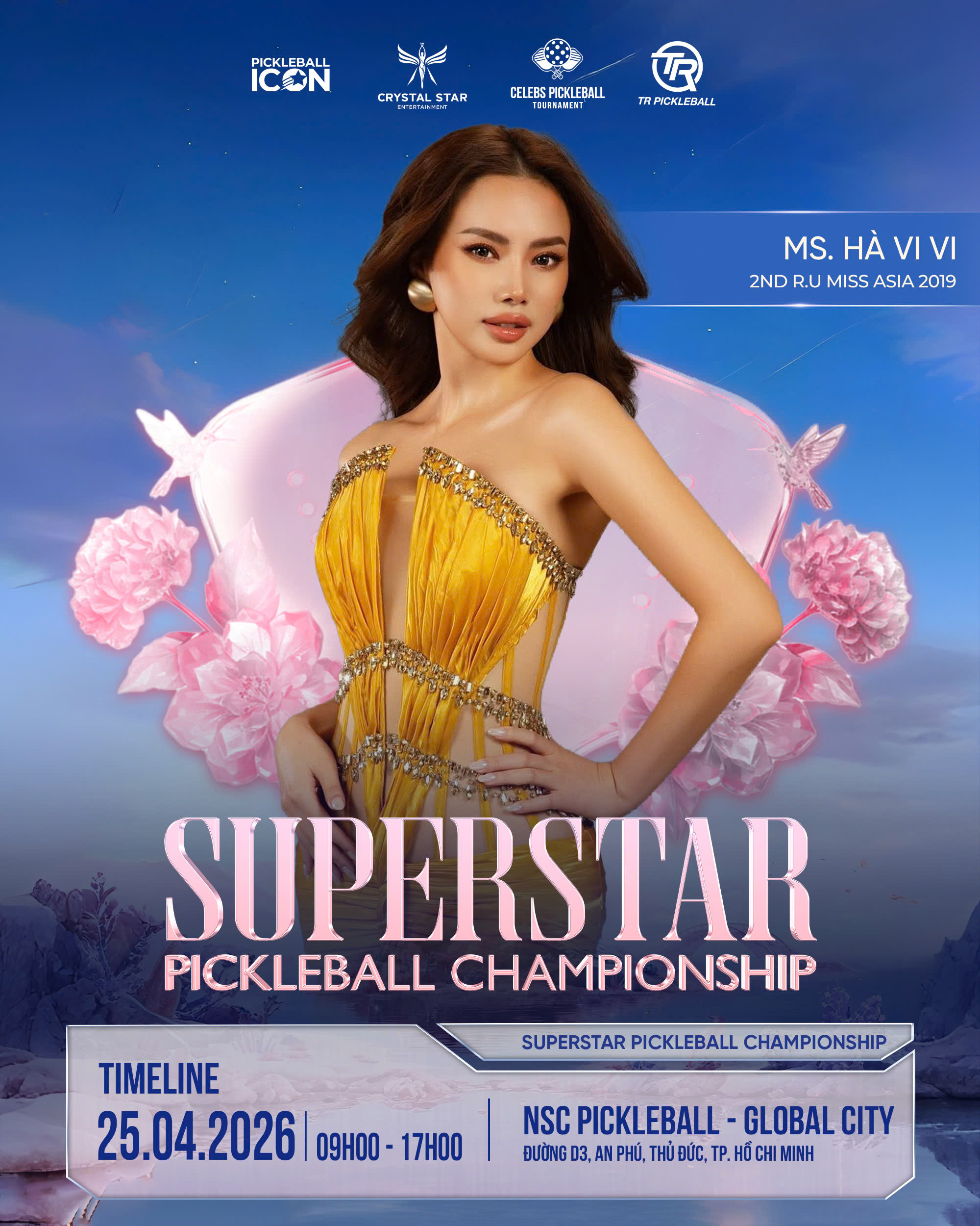 The Superstar Pickleball Championship is organized with the goal of creating a dynamic playground where sports intersect with music and fashion. It offers artists a chance to showcase a more athletic and competitive side, in contrast to their usual glamorous image on stage or the runway. Behind this major tournament is a powerful and dedicated organizing team that has laid the foundation for a high-class sporting event. Notable contributors include Mr. Vu Thai (Founder of Crystal Star Entertainment), Mr. Huynh Huu De (Chairman of Ho Chi Minh City Young Talent Development Center), Mrs. Ruby Anh Thu (Head of External Relations), Mr. Tommy Nguyen (Founder of Icon Pickleball), and Mrs. Rubi Selena (Miss Ao Dai 2026).