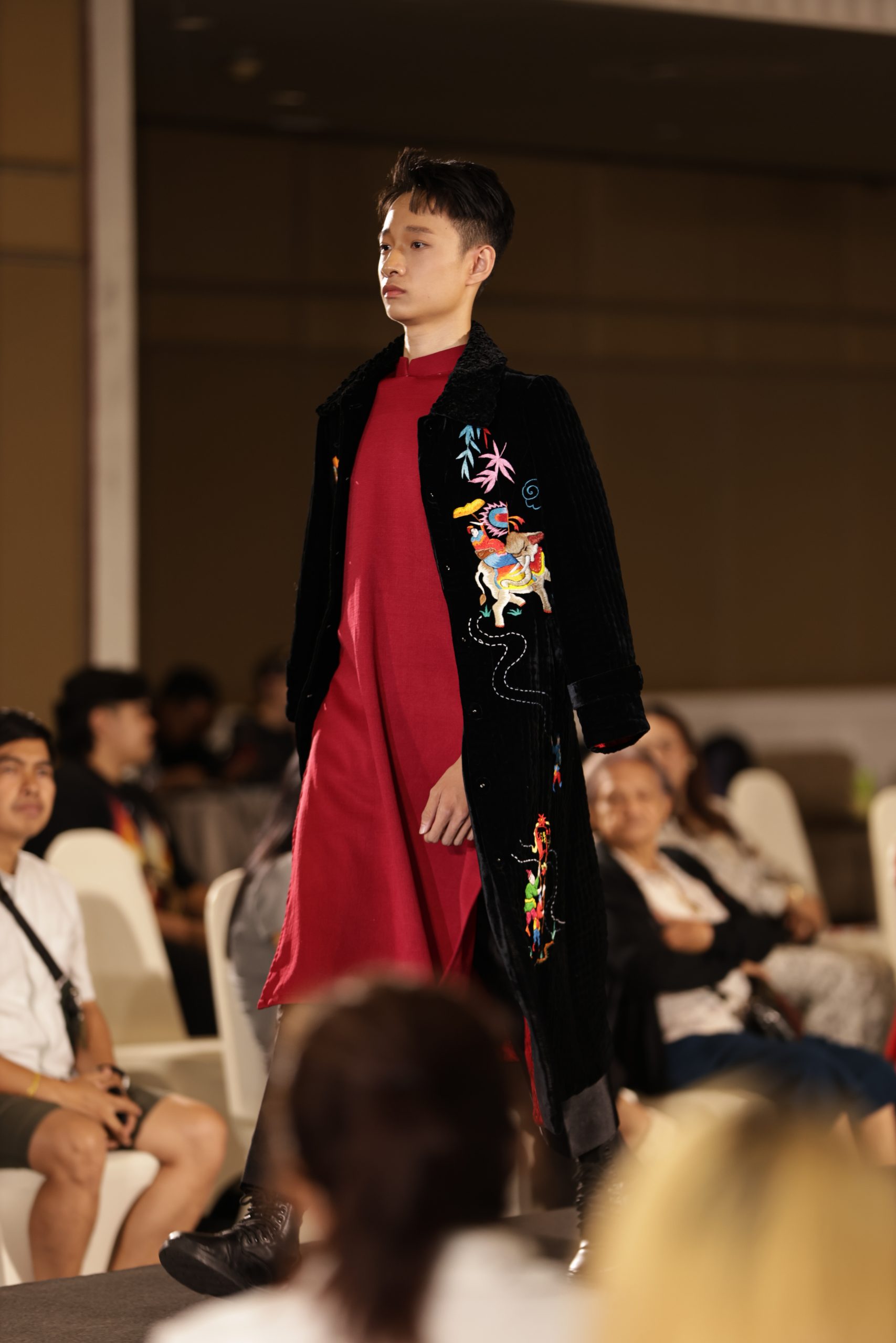 At Thailand International Fashion Week 2025, Nguyen Ba Thien Minh graced the runway with a presence that left a deep impression on the audience. In the collection Mong Ho Sac by Dac Ngoc Designer House in collaboration with Ken Design by Hanh Nguyen, he not only showcased a design rich in cultural identity but also conveyed a spirit of creativity through his confident aura, captivating gaze, and steady walk.